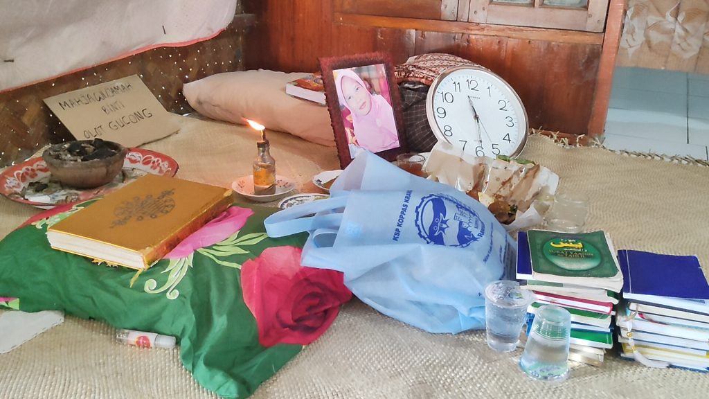 Bapak Olot Nesan merupakan Generasi ke Lima yang tinggal di rumah adat Karanggan ini, beliau merupakan pribadi yang ramah, baik, berbudi, cerdas dan tampan. beliau yang pada saat penulis berkunjung baru saja ditinggal istri tercinta. adat istiadat yang unik juga tercermin dari ritual yang dilaksanakan ketika keluarga meninggal dunia. Selama 40 hari akan disiapkan sesaji berupa nasi, kemenyan, foto, jam, kopi, teh, air putih, Al Qurán, Yasin, Bantal dan Pelita yang terus menyala. karena mereka percaya Roh orang yang meinggal selama 40 hari masih berada di rumah.