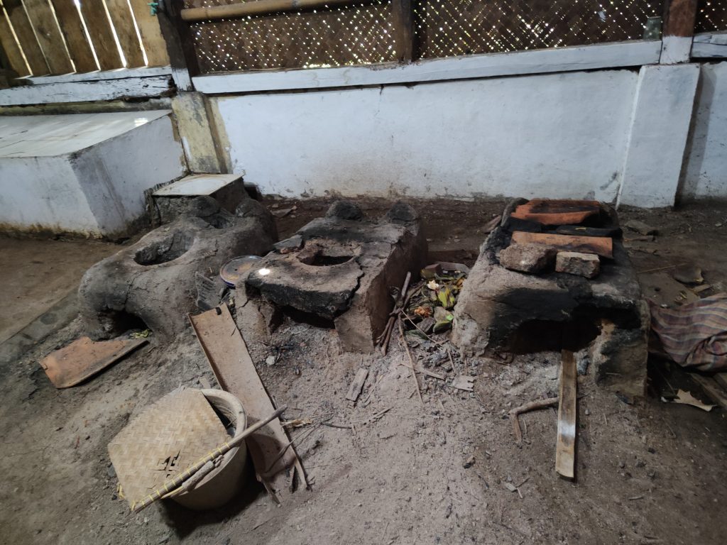 - Srondoyan atau dapur, yaitu tempat luas yang ada di bagian belakang. Tempat ini dijadikan sebagai ruang memasak, juga sekaligus ada tempat untuk makan.