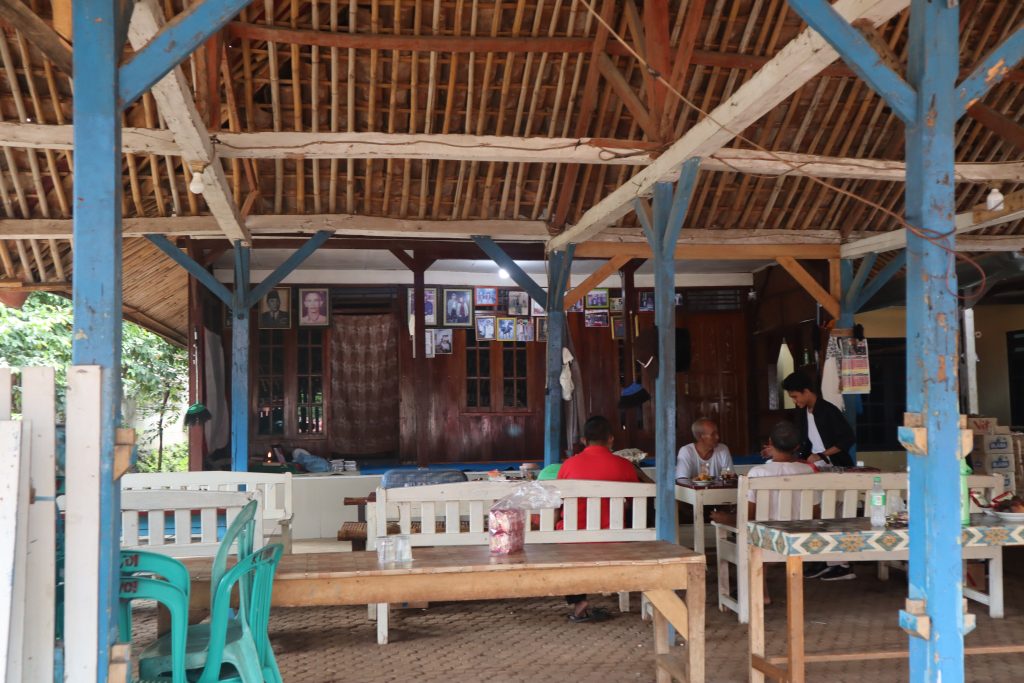 - Bagian teras depan rumah, sebagai tempat menerima tamu. Akan selalu dibersihkan setiap hari sebagai penghormatan apabila sewaktu-waktu ada tamu datang. dan juga penuh dengan makanan dan minuman untuk menjamu tamu.