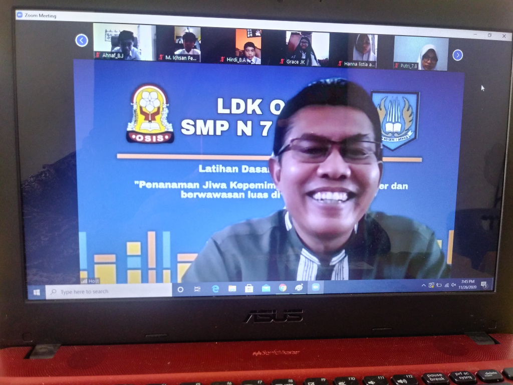 LDK OSIS SMP N 7 Bekasi tahun 2020 dilaksanakan online hari Jum’at, tanggal 27 November 2020 mulai dari pukul 08.00 WIB hingga pukul 15.00 WIB.