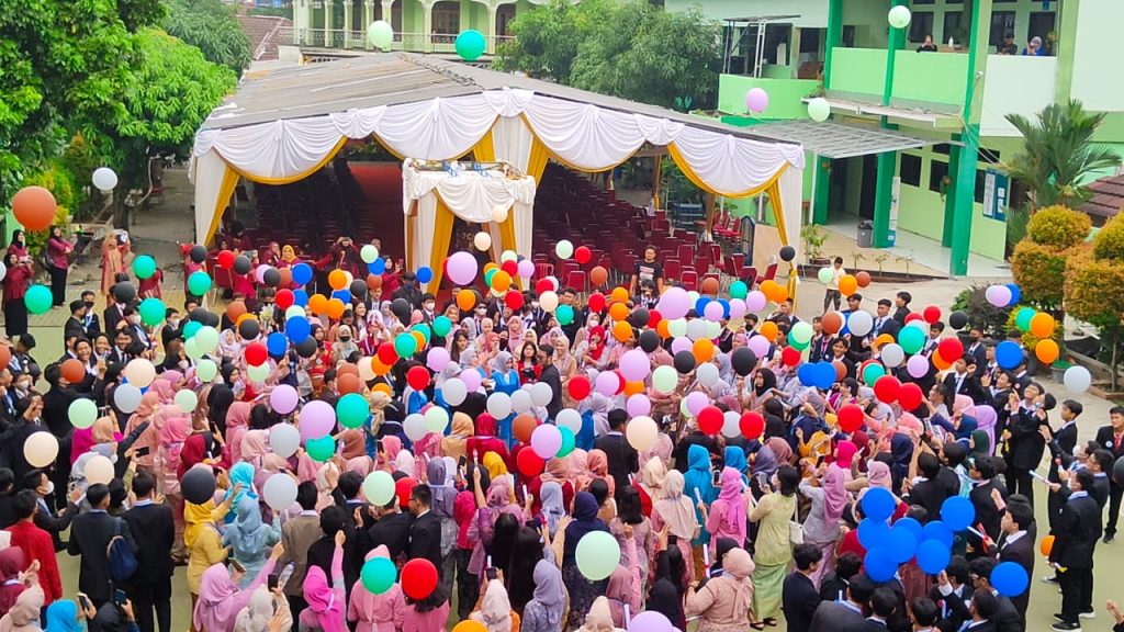 Kegiatan kemudian dilanjutkan dengan pelepasan balon secara serempak simbol dari diterbangkannya mimpi- mimpi ke langit dengan harapan dan doa. semoga Allah mengijabahnya. aamiin.