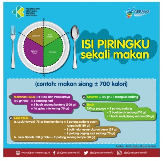 Isi Piringku Sekali Makan (Contoh: makan siang ±700 kalori)
