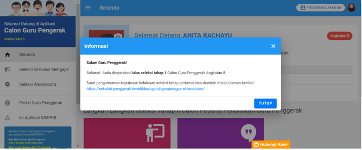 Beliau tengah menyelesaikan pengisian Essai dan lulus verval hingga dinyatakan lolos tahap 1 oleh asesor Balai Besar Guru Penggerak.