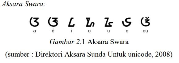 Komponen yang satu ini terdiri atas 7 huruf vokal. Berbeda dengan huruf latin, ejaan Sunda memang memiliki 7 vokal. Selain a, i, u, e, dan o, terdapat pula é dan eu.