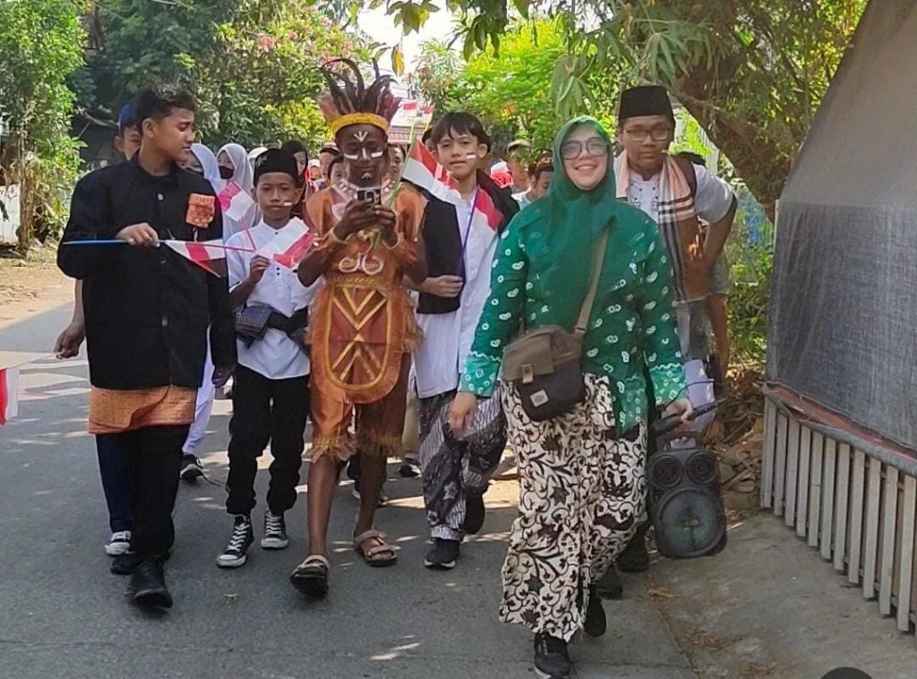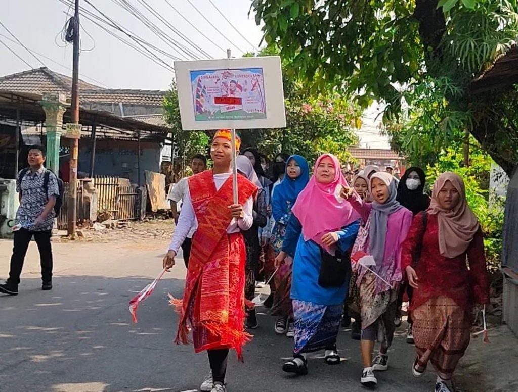 Seluruh warga SMPN 7 Bekasi berkeliling sekitar sekolah di perumnas II dengan menggunakan pakaian adat sekaligus berbagi snack untuk warga.
