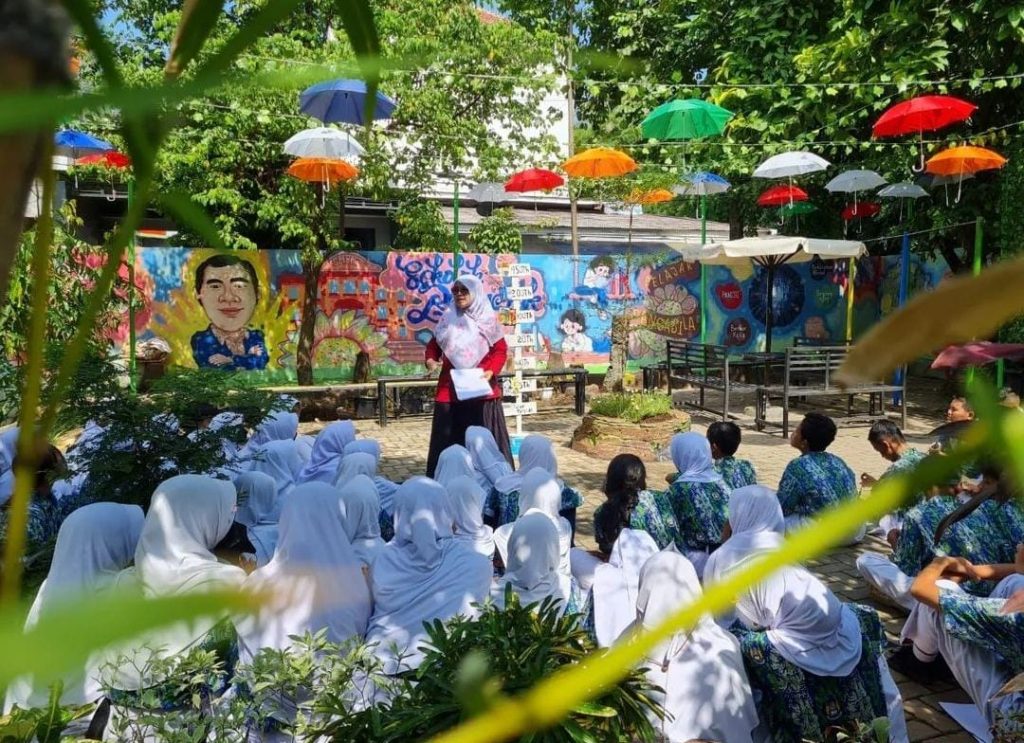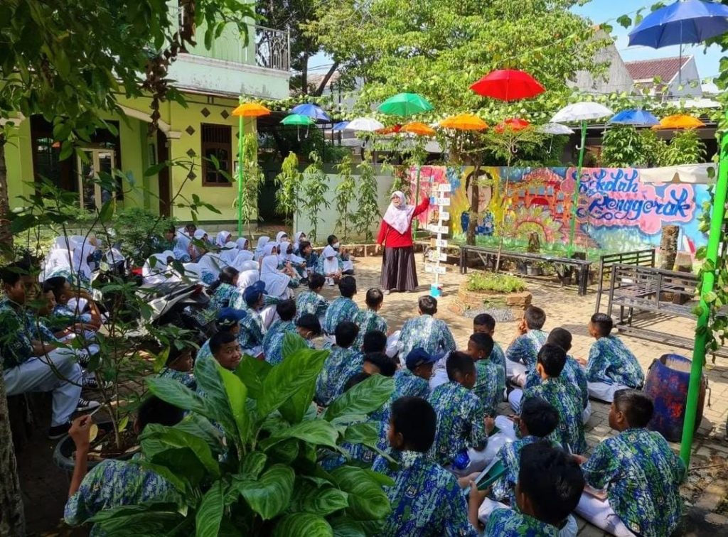 Kolaborasi antara sekolah dengan Komunitas Seni Jalanan di Kota Bekasi menciptakan karya lukisan dinding dengan tema karikatur sekolah penggerak dan profil pelajar pancasila.